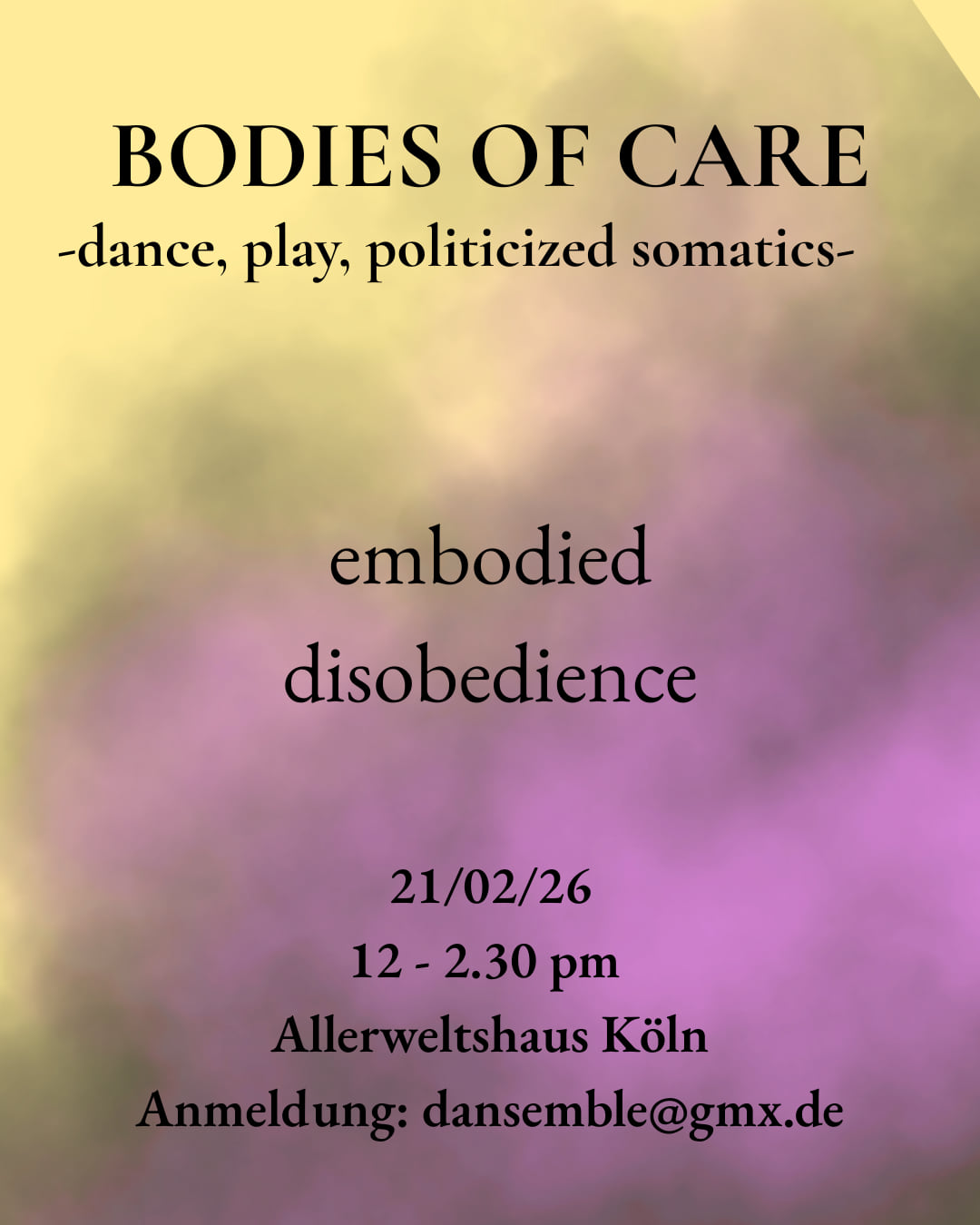 Verkörperter Ungehorsam bewegt sich entgegen dieser vermeintlichen Normalität. Dies ist eine Einladung gemeinsam zu erforschen, wie wir damit anfangen können.