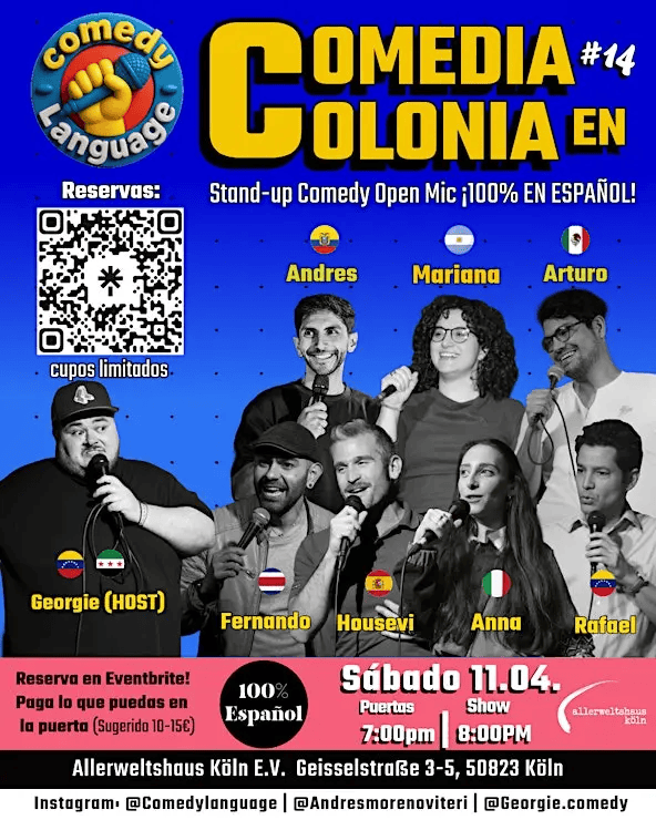 ¡Ven a disfrutar de nuestro Open Mic de Stand-up Comedy en español en la ciudad de Colonia!