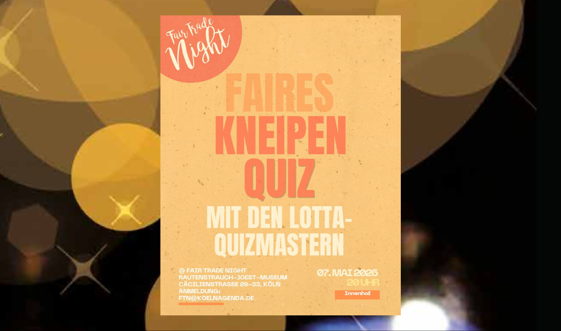 Das Quiz findet im Rahmen der Fair Trade Night am 07. Mai in Köln statt.