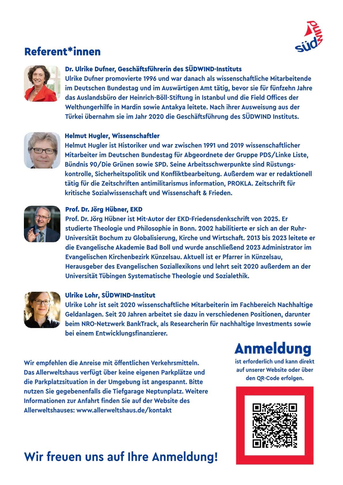 ◦ Rüstung in nachhaltigen Geldanlagen: Peacewashing oder Beitrag zur Friedenssicherung? Über die “Weiterentwicklung” des Nachhaltigkeitsbegriffs (Ulrike Lohr, SÜDWIND-Institut)
