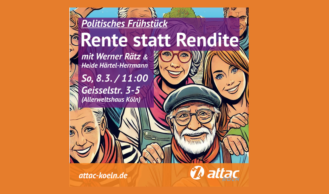 Beim Politischen Frühstück wird der Attac Basis-Text „Rente statt Rendite!“ – Eine solidarische und armutsfeste Alterssicherung ist möglich