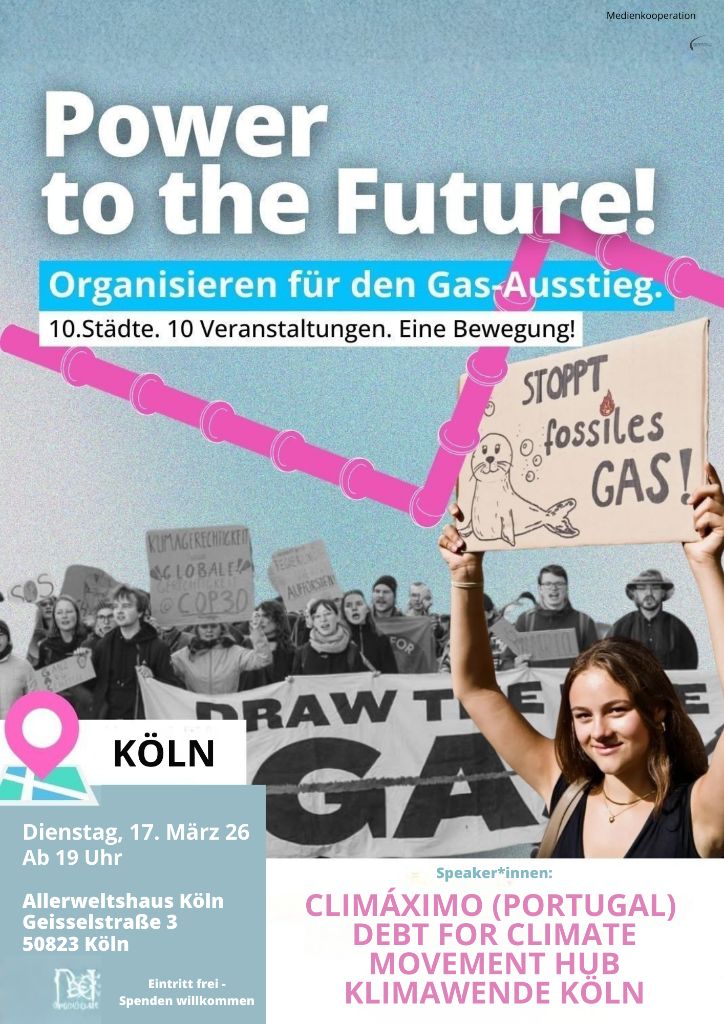 Gemeinsam schauen wir darauf, was Bewegungen bereits erreicht haben, was aktuell in Köln passiert, und diskutieren im Anschluss Handlungsoptionen, um den Gasausstieg zu erkämpfen.